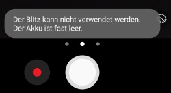 Daneben haben wir auch in anderen Kamera-Apps festgestellt, dass die Blitz-Warnung bei geringem Akku hier scheinbar nicht greift und dementsprechend auch nicht die Meldung „Der Blitz kann nicht verwenden werden. Der Akku ist fast leer“ erscheint.